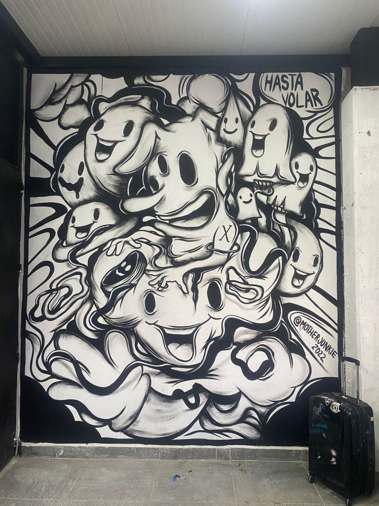 Mothers se adentró en un túnel que lo llevó a un multiverso pop entre manos y nubes, dejó fluir su imaginario, los personajes que esperaban su turno para salir y existir encontraron su momento. Sus personajes viven en un universo monocromático, son seres cósmicos, con fuerza y espontaneidad que explotan en sus obras, nos desafían e invitan a admirar la armonía del caos.